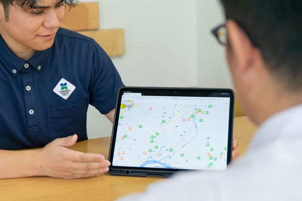 弊社がお届けしている不動産情報DX「スモ~ラ」で、土地情報を素早くご紹介します。地図上に土地のアイコンが表示されるので、位置が分かりやすいと好評です✨