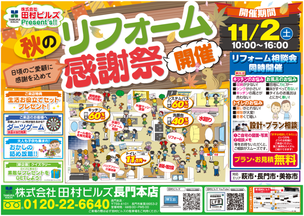 長門本店では日頃のご愛顧に感謝を込めて、気軽に相談ができるお得なリフォーム祭を開催します✨