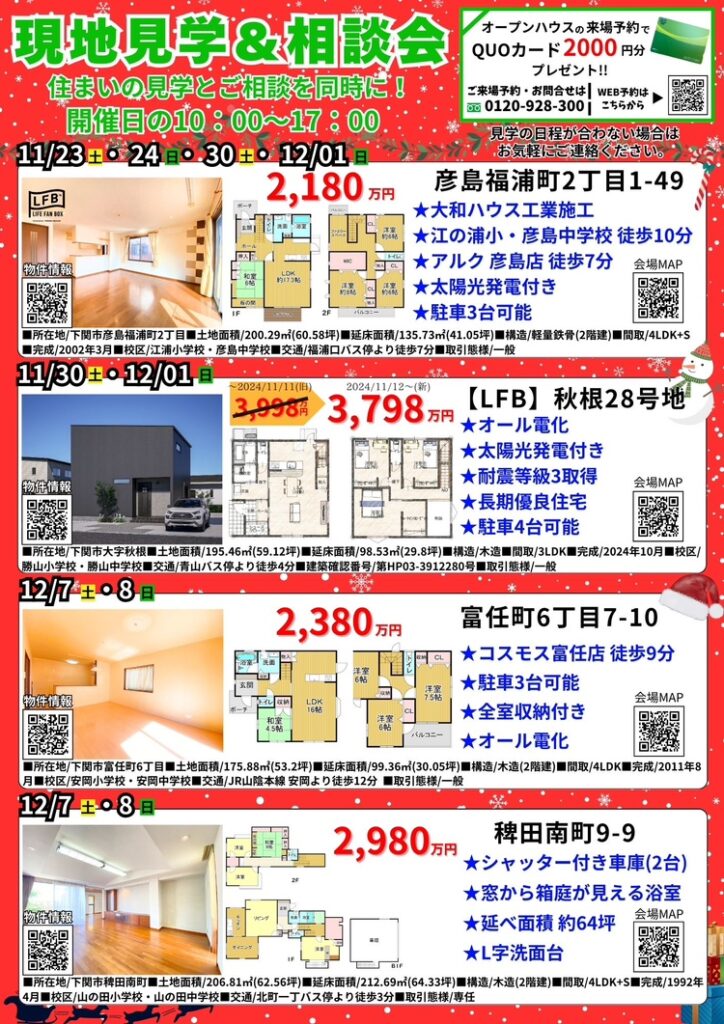 住まいの見学と相談が同時にできるオープンハウスを山口県下関市各所で開催します✨