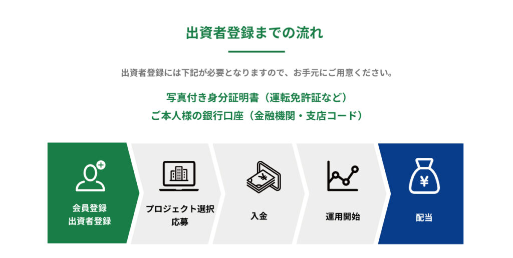 身分証明書をアップロードし、後日届いた本人確認ハガキに記載されている「本人確認ID」をサイト上で入力いただくと、出資応募が可能になります。ハガキの郵送には1週間ほどかかる場合がございます。