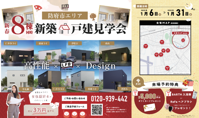 そのLFB新築住宅が山口県防府市エリアにも充実しているということで、新春特別イベント開催中です✨