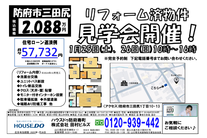 お問合せ:TEL 0120-939-442 (ハウスドゥ!防府寿町店)