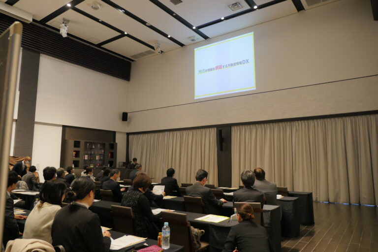 研修会では「地元の情報を網羅する不動産情報DX」と題し、当社が提供する不動産情報DXサービス「スモ~ラ」をベースに当社の取り組みをご紹介させていただきました。