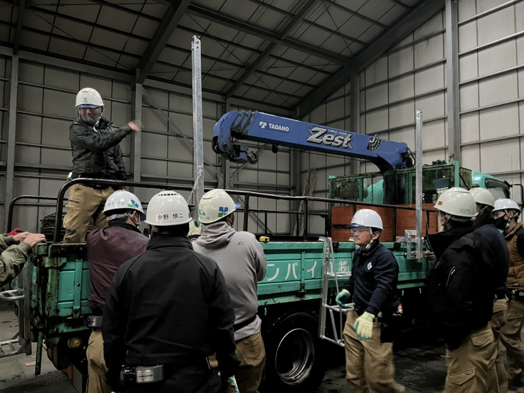 内容:開会挨拶・事故事案共有・マナー講習・安全7か条唱和・実習(安全帯、昇降設備について)など