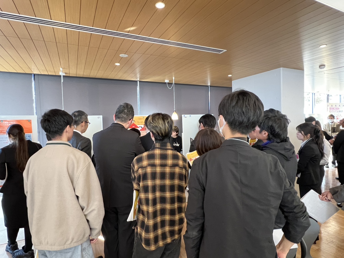 学生が1年を通じて学んだことを発信する場として、山口県立大学にて、山口大学、山口学芸大学、三大学合同でPBL合同発表会が行われました。参加したのはおよそ100人の学生と40の企業です。