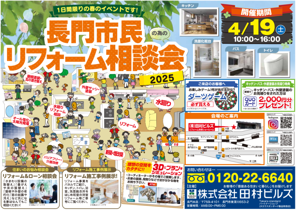 お問合せ:株式会社田村ビルズ 長門本店 (TEL 0120-22-6640)