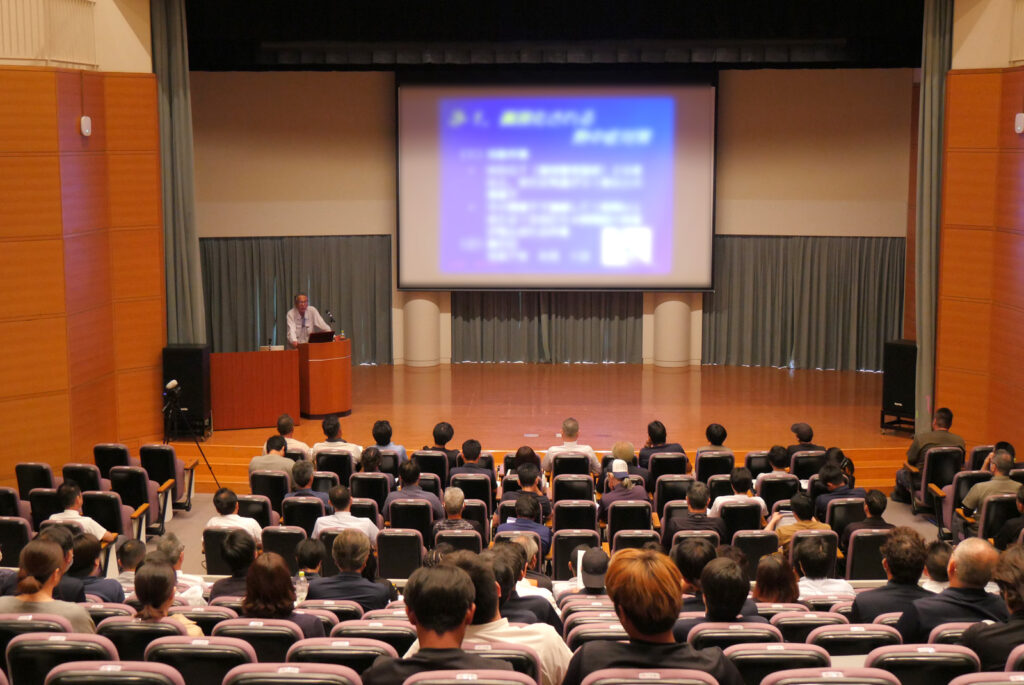 本大会は、社員および協力会社の皆さま(91組107名)を対象に、安全衛生への理解を深め、日頃の現場での安全意識をより一層高めることを目的として毎年実施しているものです。今回も労働安全コンサルタントの松永様をお招きし、過去のヒヤリハット事例や事故報告を聞き、原因分析と再発防止に向けた取り組みについて情報共有を行いました。