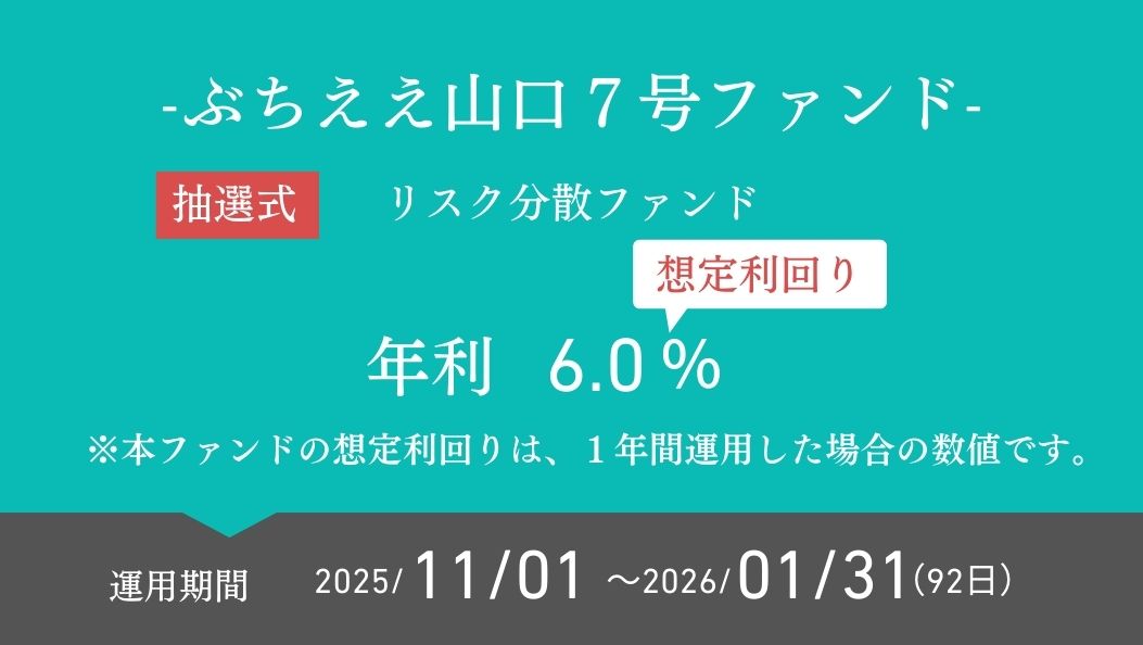 第9弾として「ぶちええ山口7号ファンド」の募集を2025年9月20日より開始したところ、多くのご応募をいただき、139%の抽選出資申込で完売いたしました。
