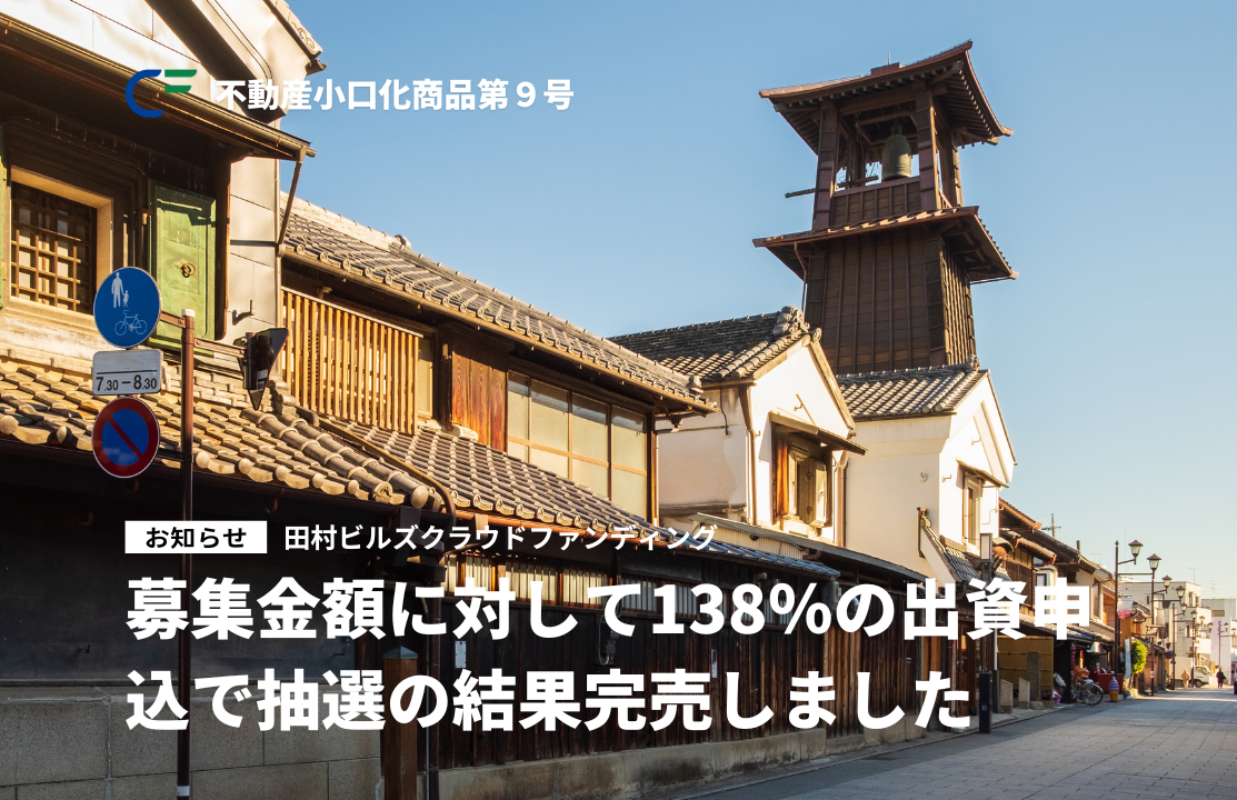 当社が提供する田村ビルズクラウドファンディングの不動産小口化商品「ぶちええ山口7号ファンド」の申込受付を終了し、応募率138%にて完売いたしました。