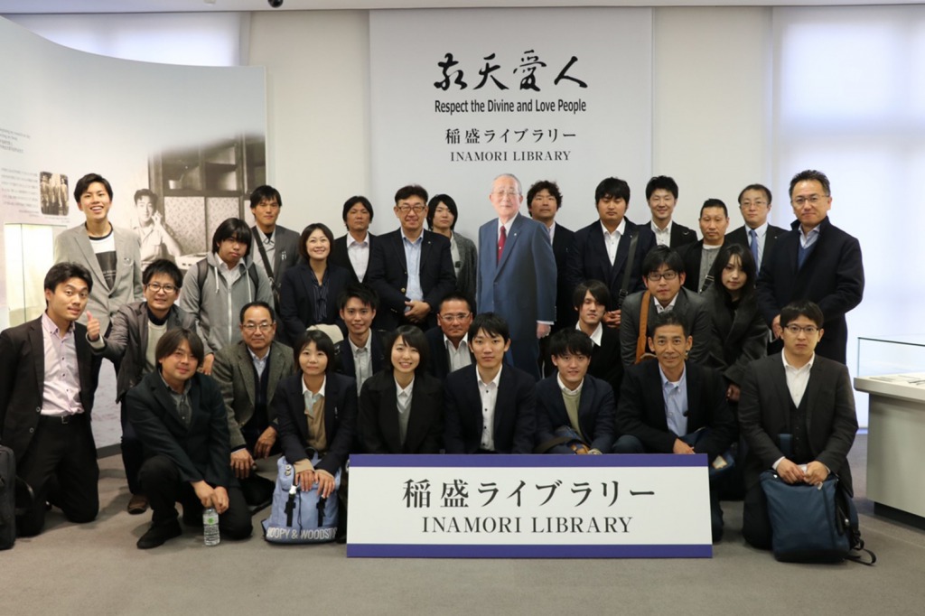 入社して間もない社員は「稲盛ライブラリー」見学へ。弊社の理念や中枢となるフィロソフィの生みの親である稲盛氏についてしっかりと学びました。
