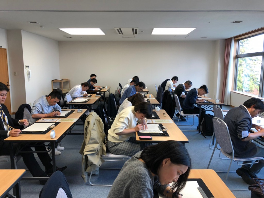 ベテラン社員は比叡山延暦寺にて座禅&写経体験。初めて経験する社員が殆どでしたが、さすがといえるほど落ち着いた様子でした。