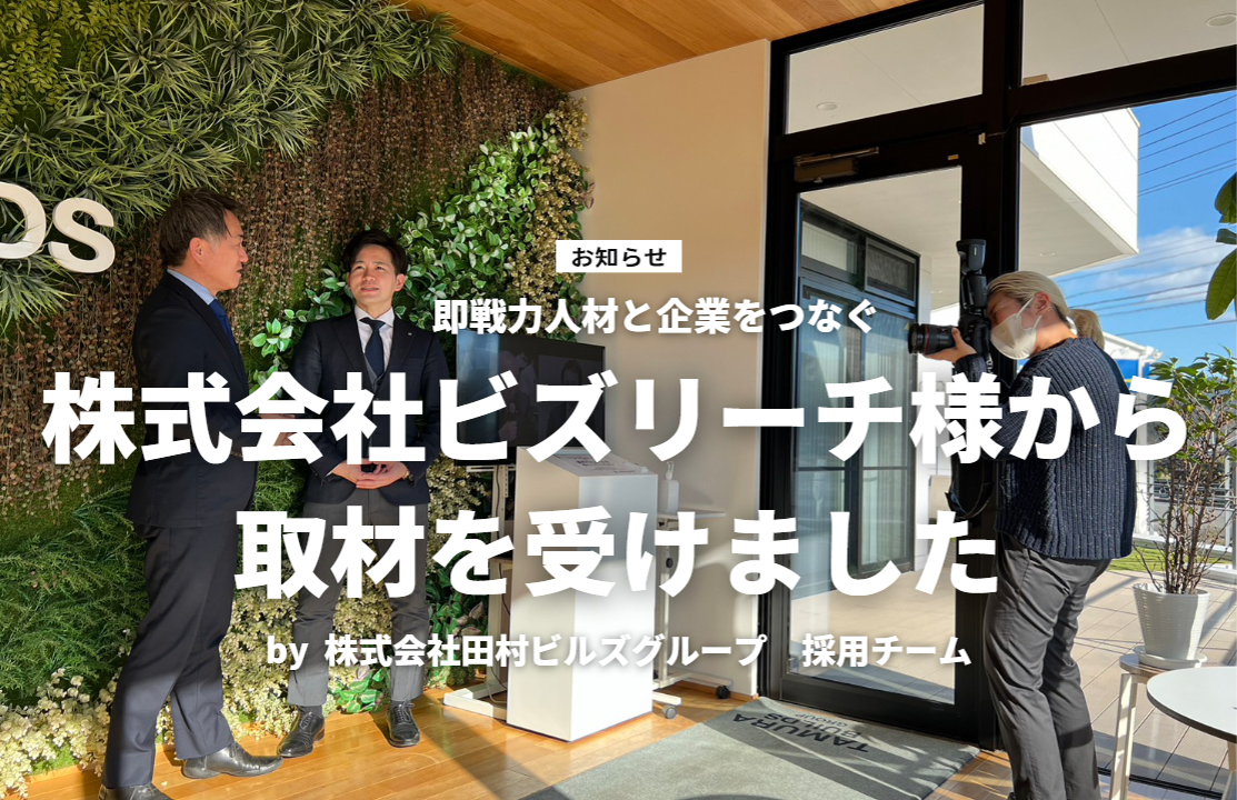 株式会社田村ビルズグループでは、毎年多くの新入社員が入社します。この度は株式会社ビズリーチ様から、その採用成功企業として取材を受けましたのでお知らせします。