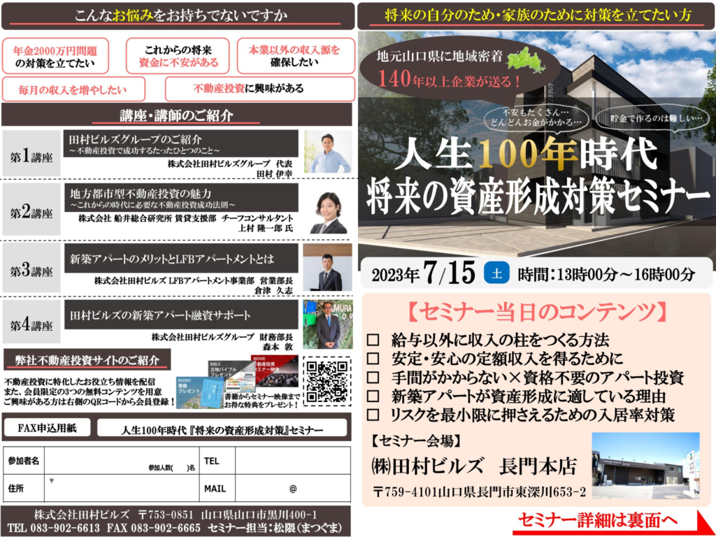 2023年7月15日に長門市にてセミナーを開催します。