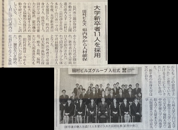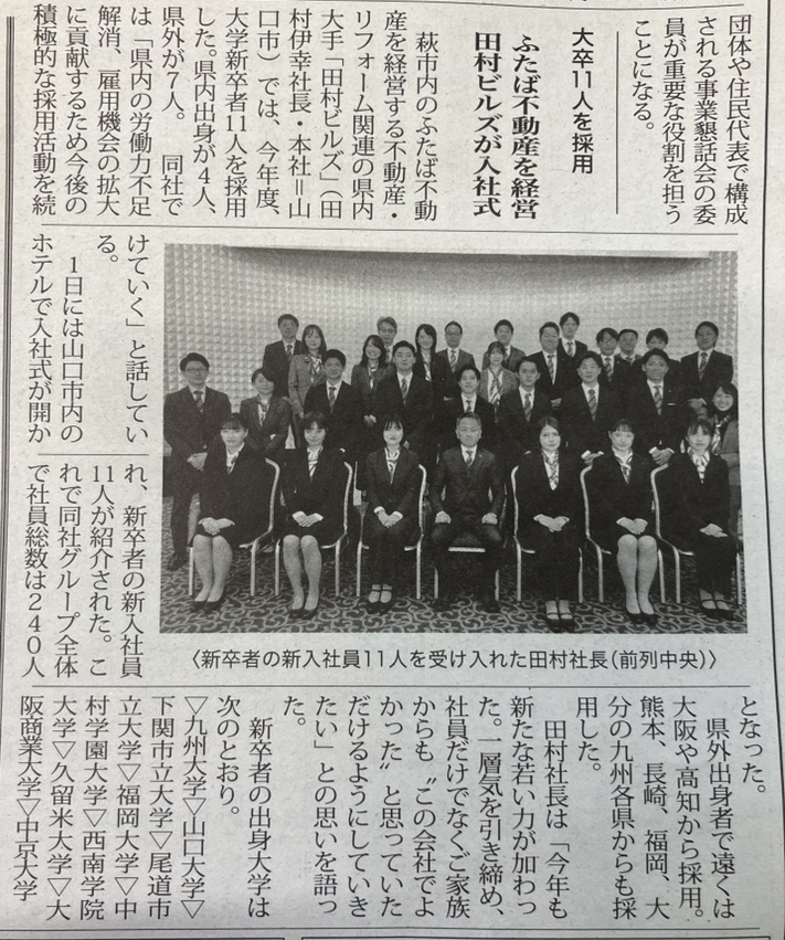 長門時事・萩時事新聞様の4月12日号にて、弊社新卒入社について掲載いただきました。