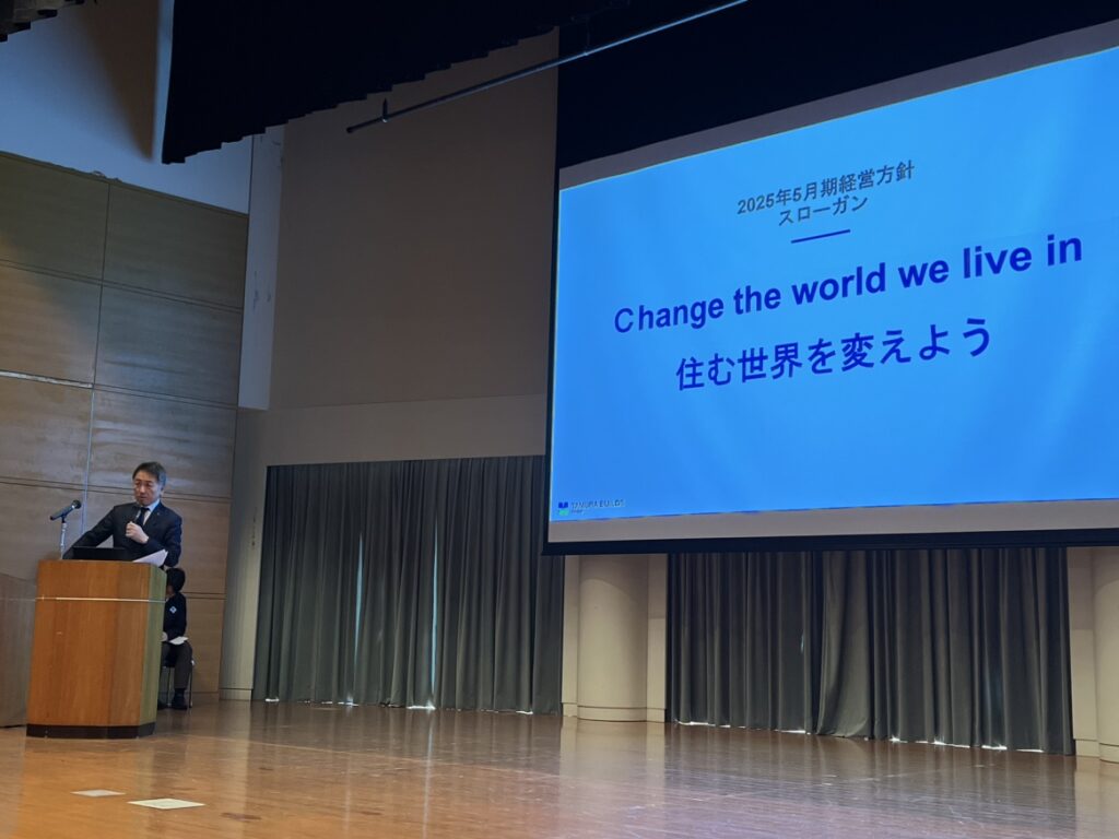 発表会では田村ビルズグループの新たな「2025年5月期全社スローガン」を共有しました。