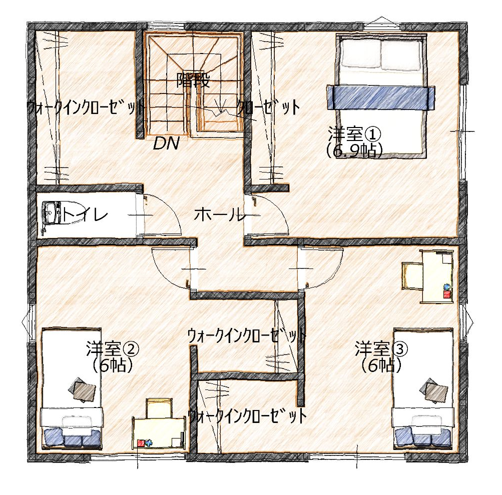 ・全居室収納があり、スペースを無駄なく利用した間取りとなっている