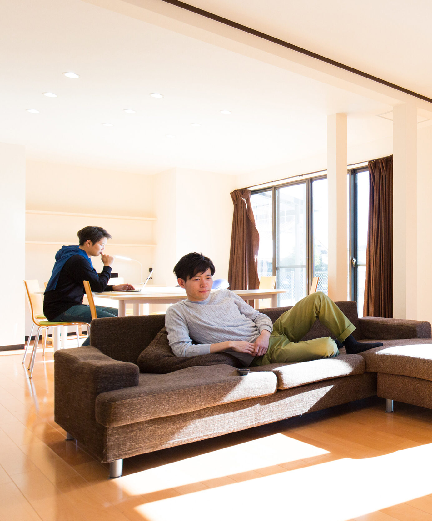 山下(写真手前):戸建の家での共同生活ですが、もちろん個室もあります。