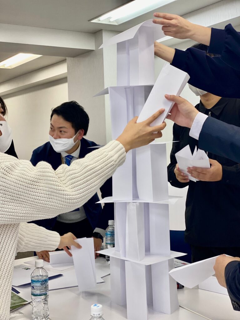 まずはチームでの親睦を深めるためにアイスブレイクのペーパータワーです🗼