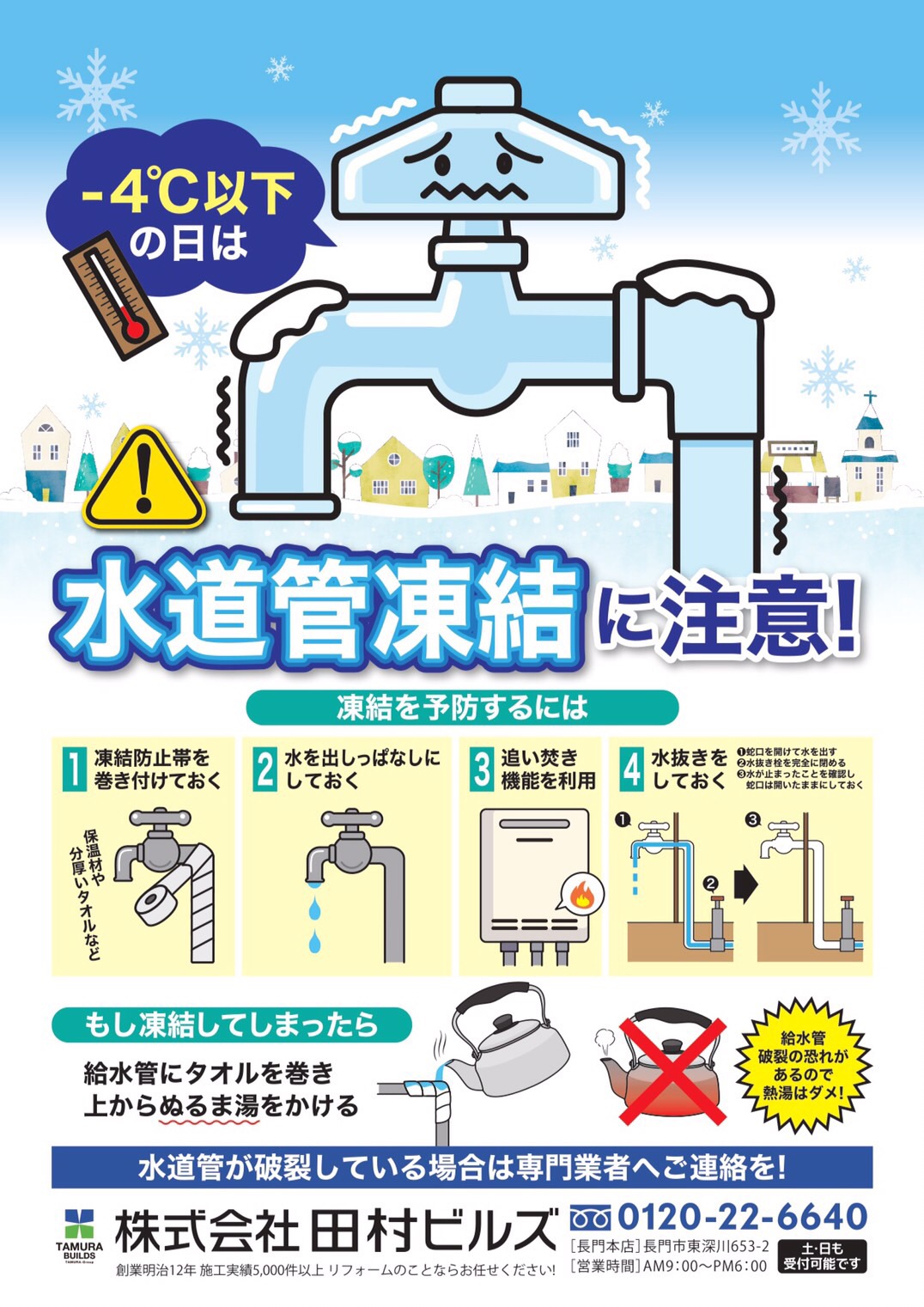 ご自宅の水道管凍結対策や停電時に備えた準備、