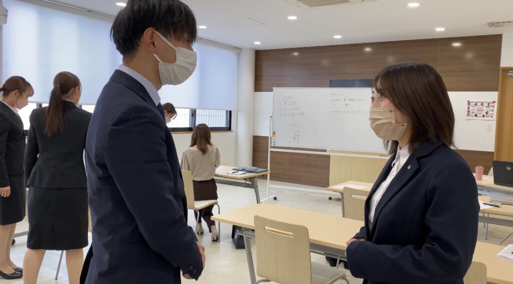 新入社員同士ペアになって、様々なケースを想定した練習を行いました!
