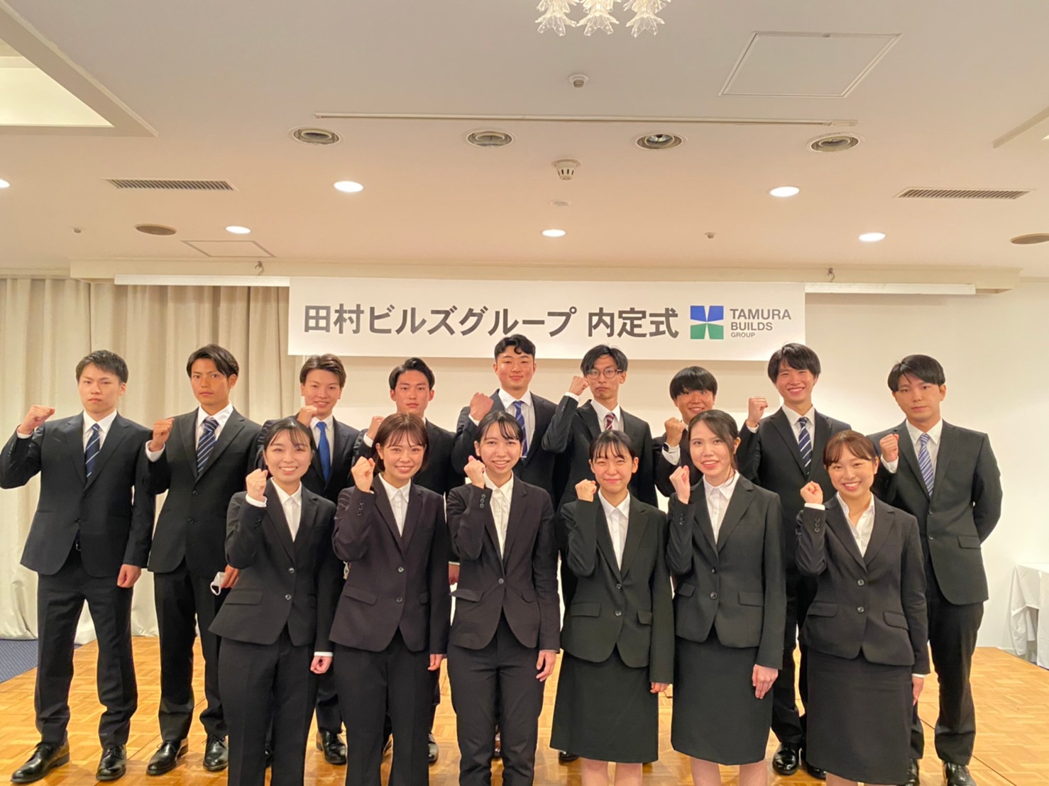 無事に式を終えた内定者15名(※撮影時のみマスクを外しております)