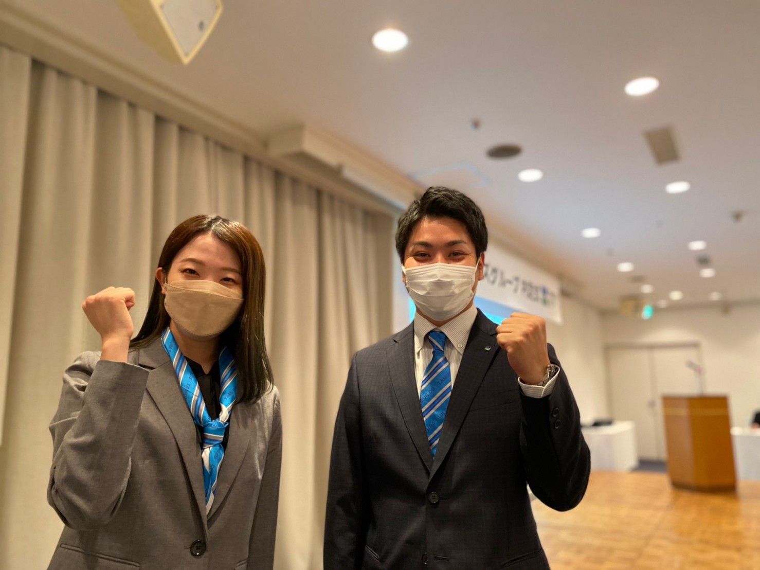 そのあとは社員も入って全員でパシャリ!📸(※こちらも撮影時のみマスクを外しています)