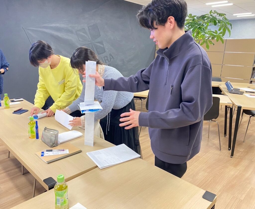 その後、「3つのうち嘘はどれ?」ゲームやペーパータワー作りを実施!