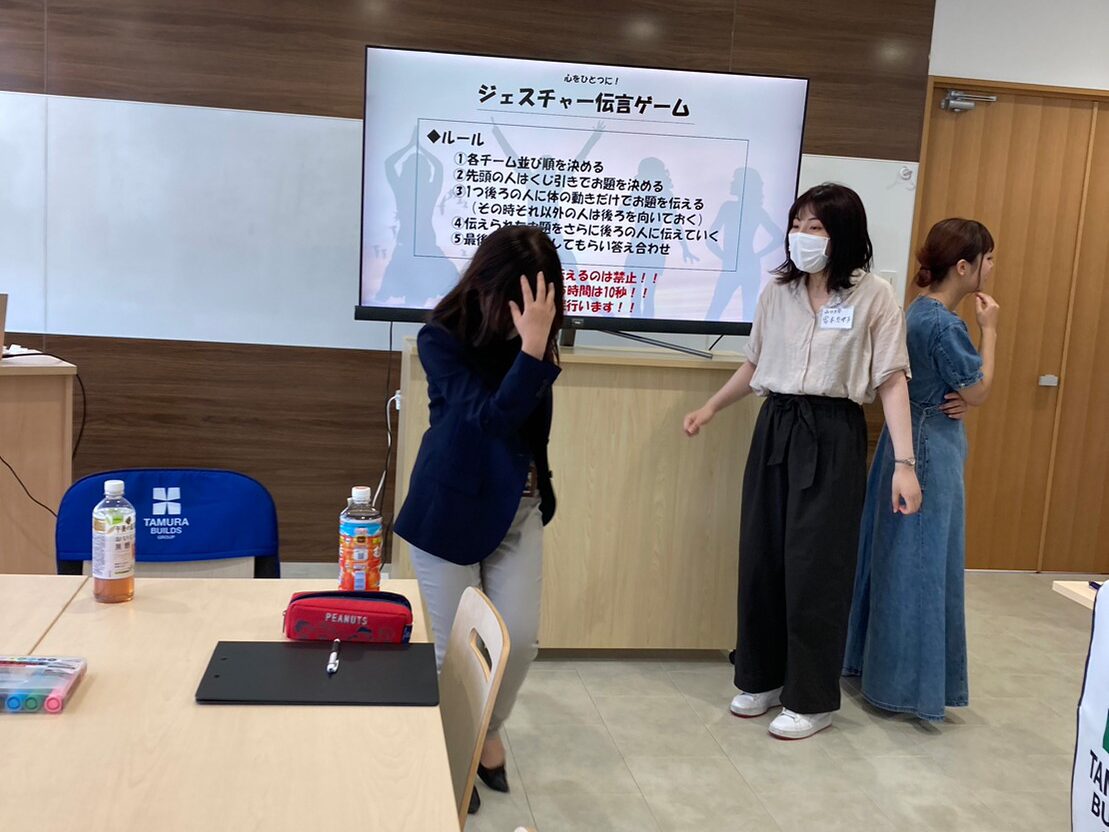 今回はやっと全員で対面にて集まれた機会でしたので、まずはみんなで心を一つにしたいと思い、「ジェスチャー伝言ゲーム」を行いました💃