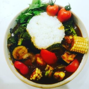 ↓テーマは『夏を乗り切れ!漢の夏野菜カレー』(にんにく多め)