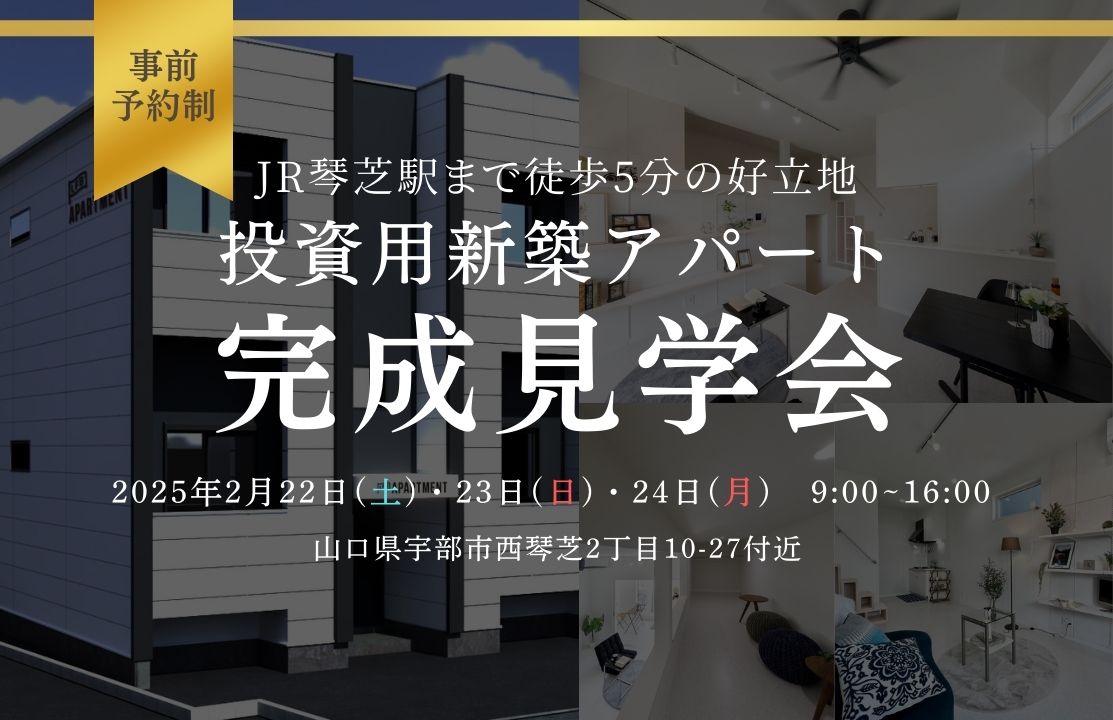 【2月22・23・24日】住む人を魅了する新築アパートの完成見学会開催 in 宇部市西琴芝