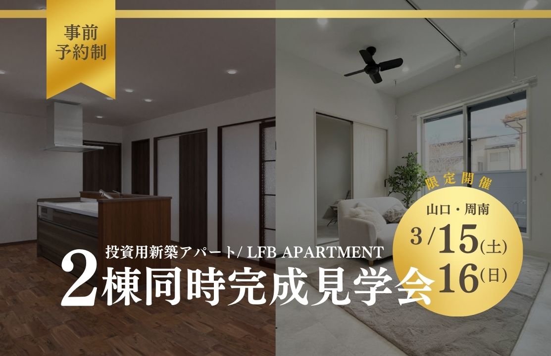 【3月15・16日】新築アパートの2棟同時完成見学会開催 in 山口市・周南市