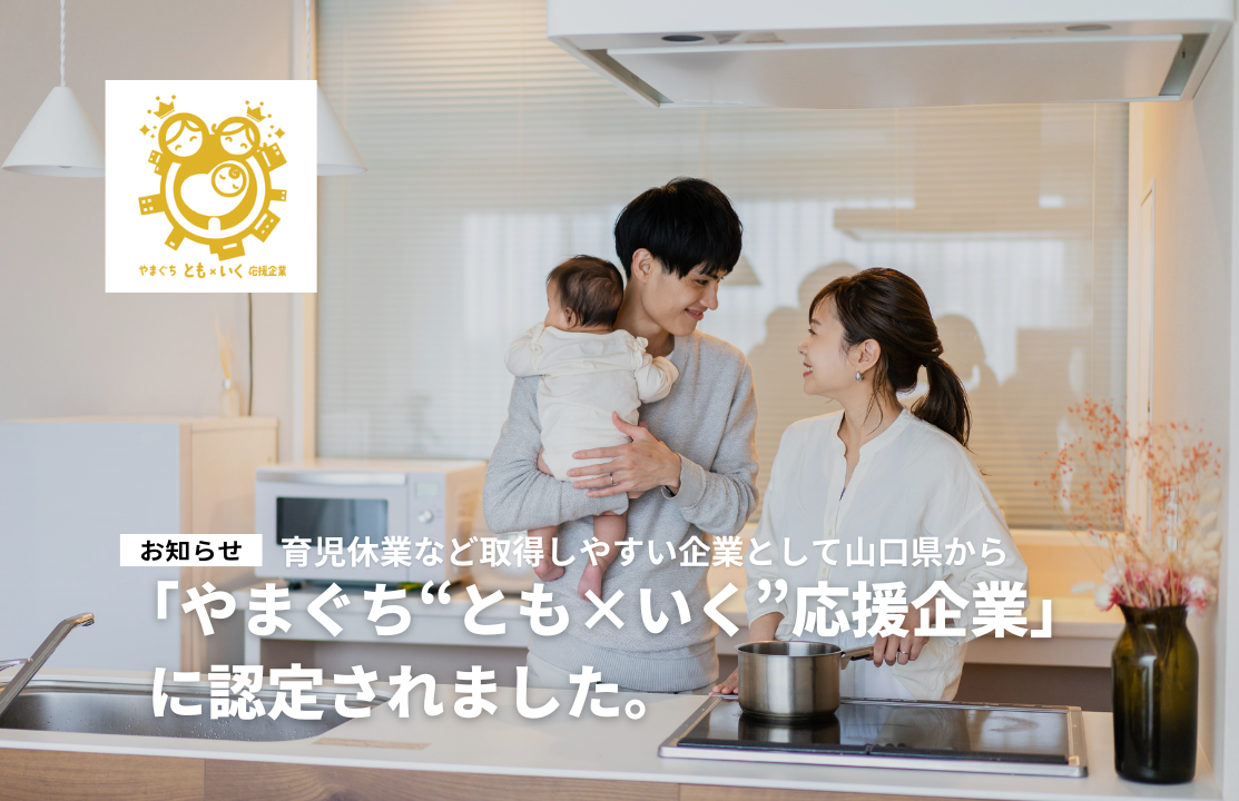 育児休業など取得しやすい企業として山口県から「やまぐち“とも×いく”応援企業」に認定されました