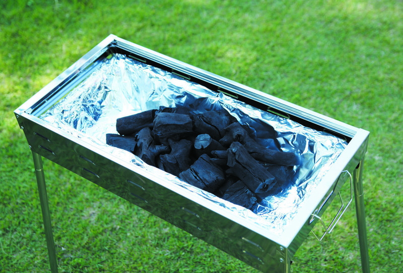 家庭用アルミホイルの約3〜4倍の厚みがある、バーベキュー用のアルミホイルがあります。これをコンロの下に敷いておくと、最後の片づけが格段と楽になります!また、食べ終わって片付ける前に網にアルミホイルをかぶせて15分くらい放置すると、肉の脂などが炭化してポロポロした状態になり、洗剤を使わなくても汚れが簡単に落ちるようになります。