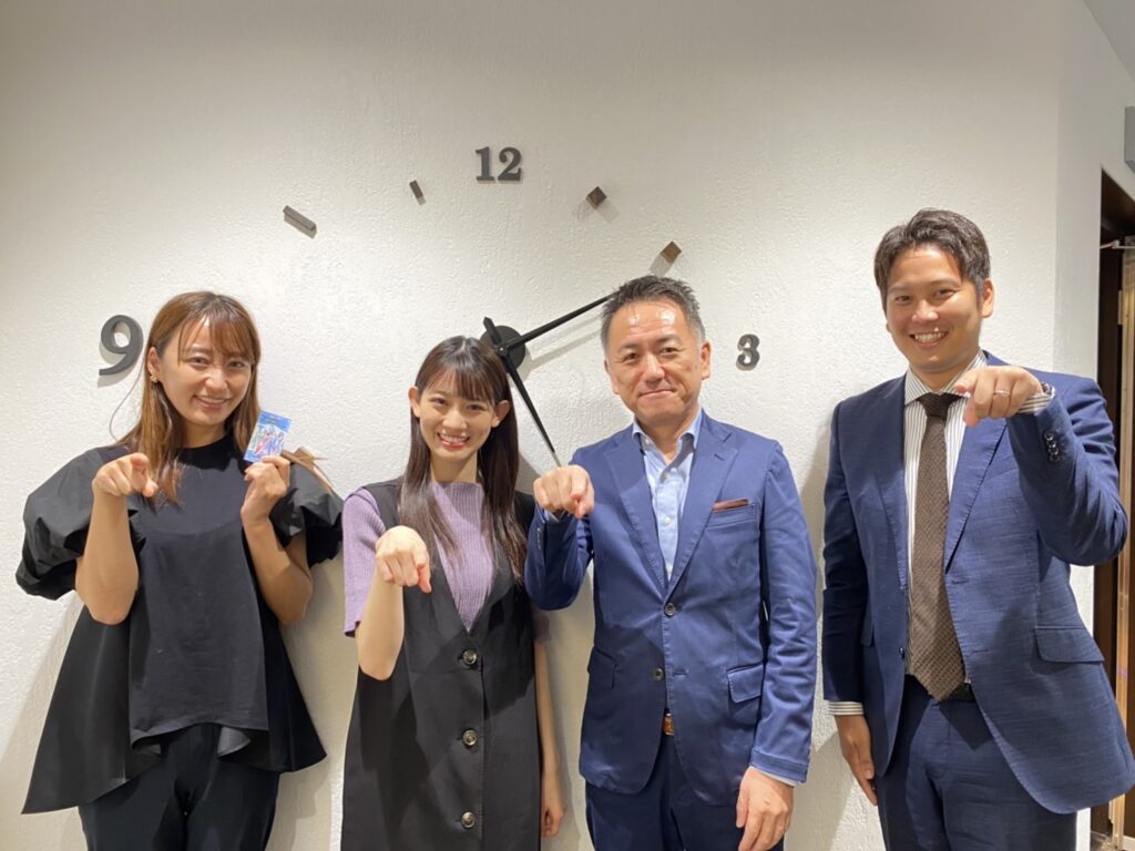 いかがでしたでしょうか。今回は東京での収録となり、山口とはまた違った雰囲気のもと、新鮮な気持ちでのラジオ収録となりました。本間さん、秋本さんとは収録後にも沢山お話をさせていただき、ぜひまたお会いしたいです。実は、10月3日の内定式に向けて、特別に収録後、田村ビルズグループの内定者へ枡田さんと秋本さんからメッセージをいただきました。撮影したメッセージ動画は内定式当日に公開いたします。また内定式の様子もお話させていただきますね。