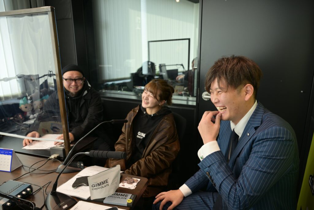 ゲストには、社長の藤井さん、スタッフの上田さんにお越しいただき、GIMME CHOCOLATEはどんなお店なのか、お店の特徴や商品についてお話いただきました。ご紹介いただいた全種類のチョコレートを実際に収録現場に持ってきていただき、試食させていただきましたが、皆さんのお気に入りのチョコレートは何だったのでしょうか?