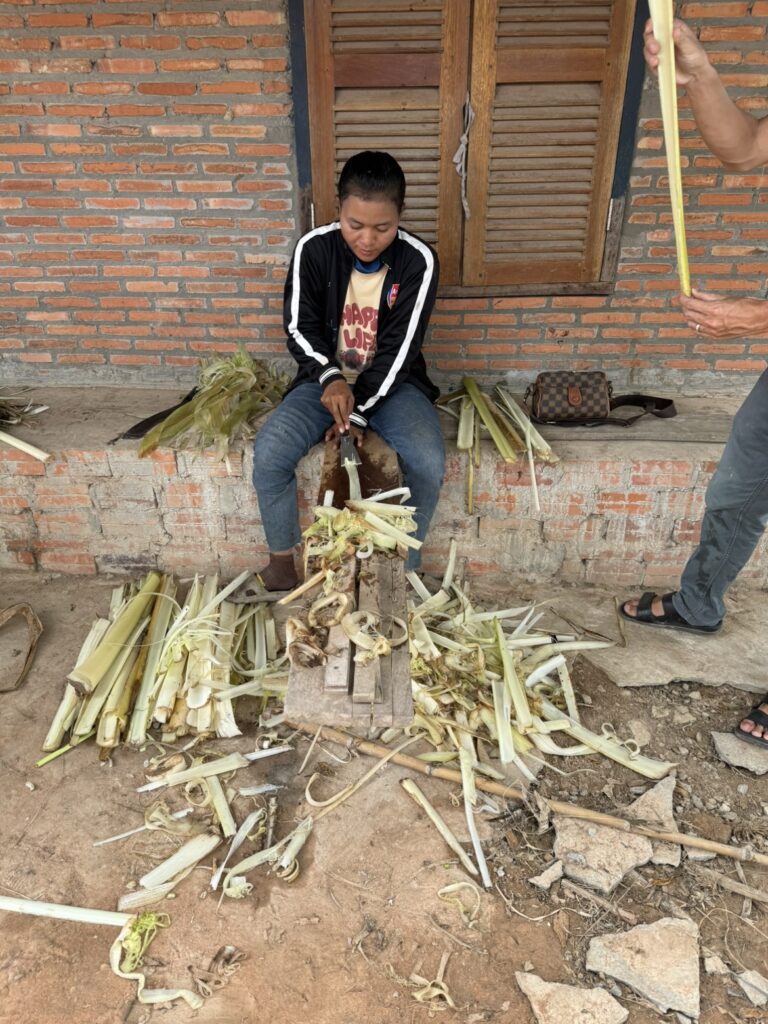 世界遺産アンコールワットで賑わう街シェムリアップから約25kmほど離れたところにある村。自然いっぱいの村だったが、2000年以降 観光客が捨てたゴミが深刻な問題となり、「ゴミ山」として有名になった。劣悪な環境の中からリサイクル品を集めて生計を立てている人たちがいる問題を解決したいと、Kumaeは仕事の選択肢を広げるためにバナナペーパー事業や日本語学校、ミシン学校の運営を行っている。