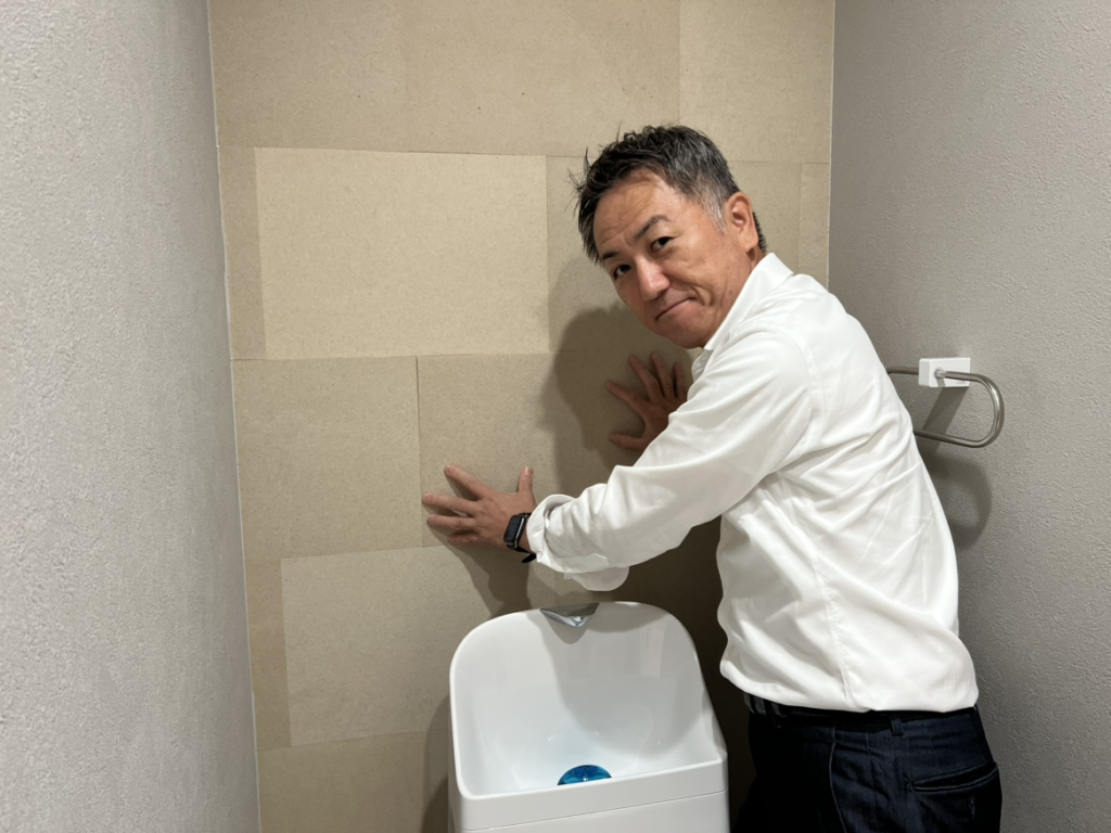 当社が運営しているLFB CAFE。トイレの壁紙や小物類にバナナペーパーを使用しています。